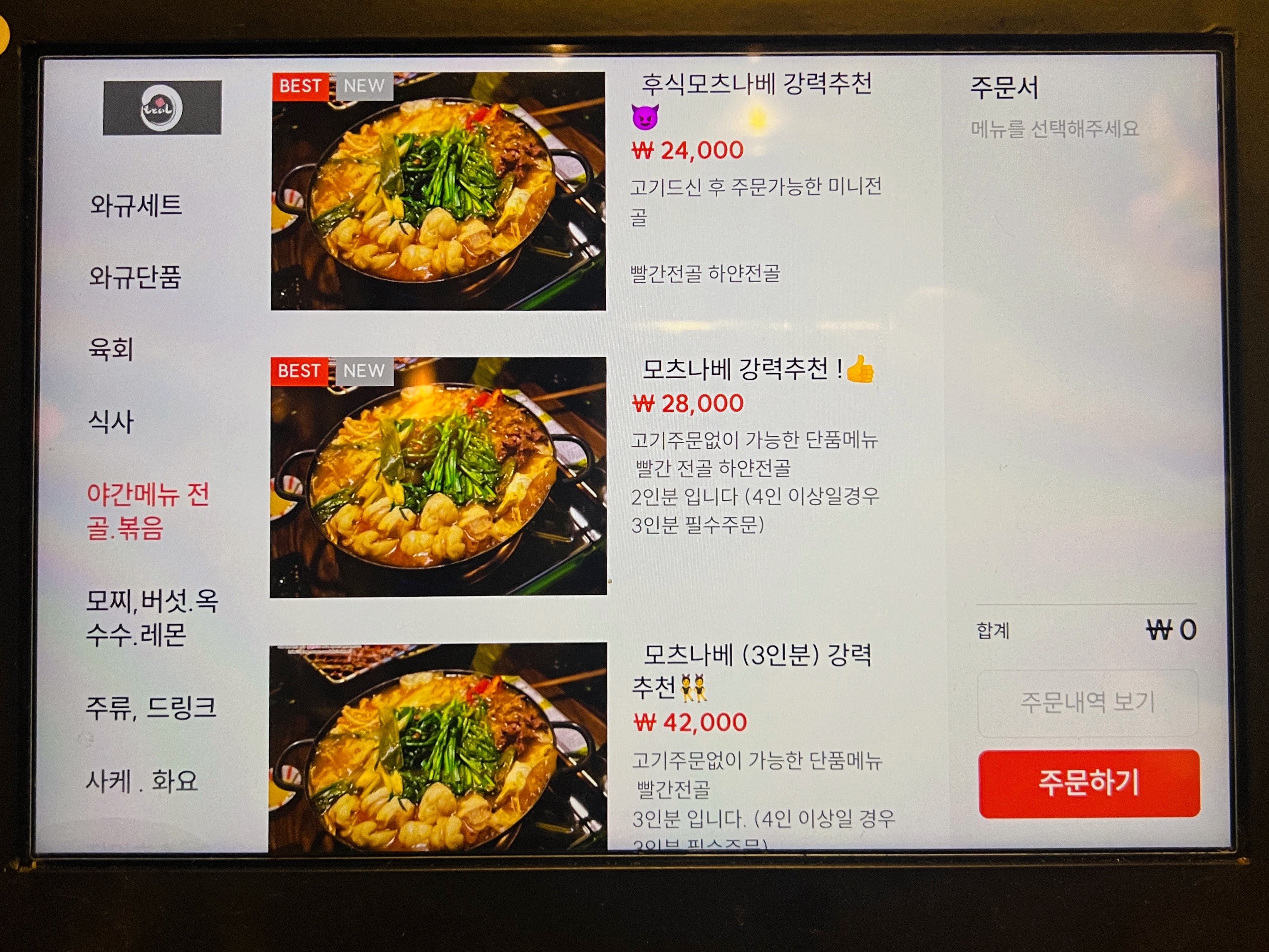 테이블마다 태블릿이 있어 주문하기 편리했어요