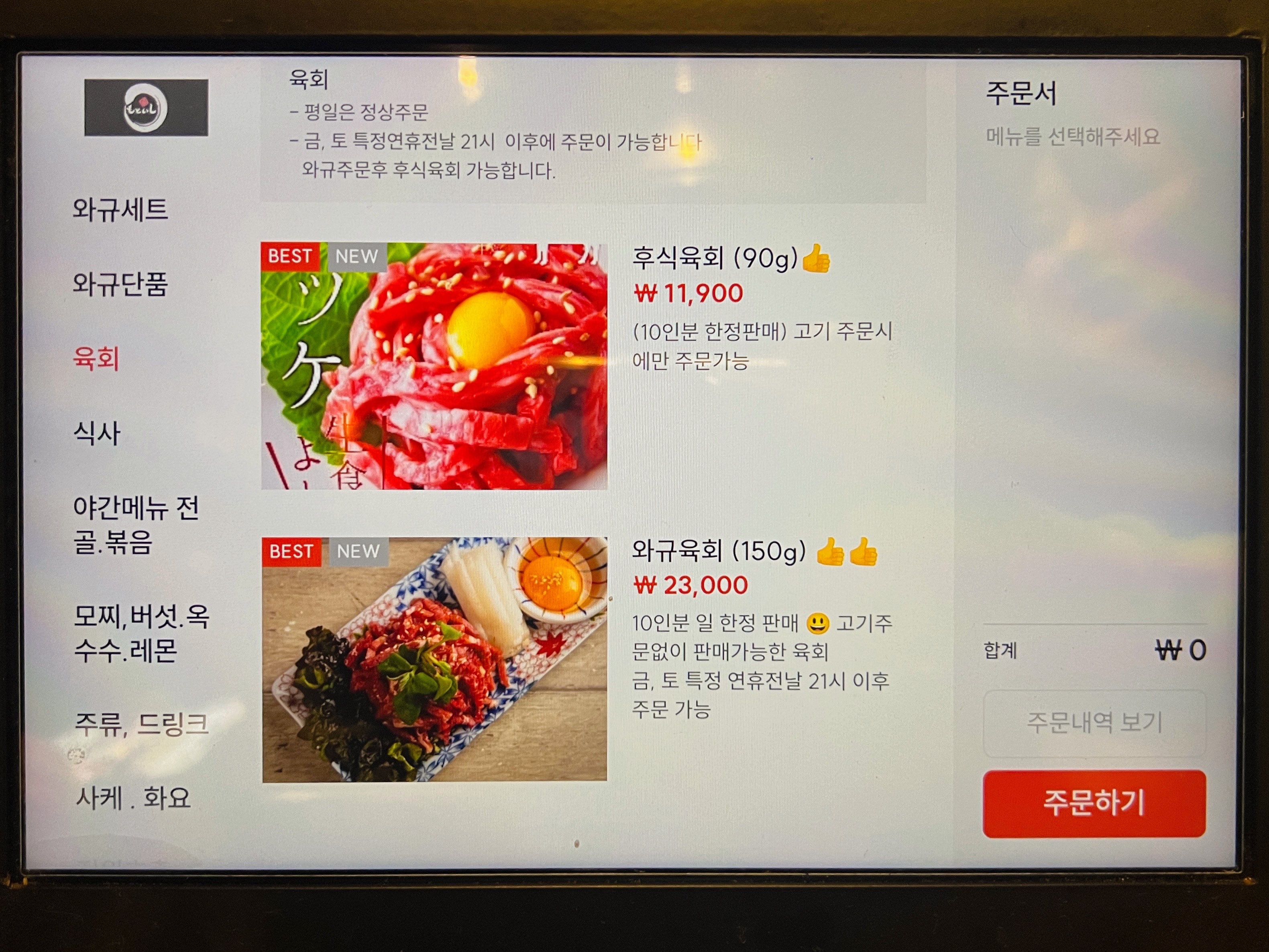 고기 주문 없이도 시킬 수 있는 메뉴가 있으니 잘 봐야겠어요:)