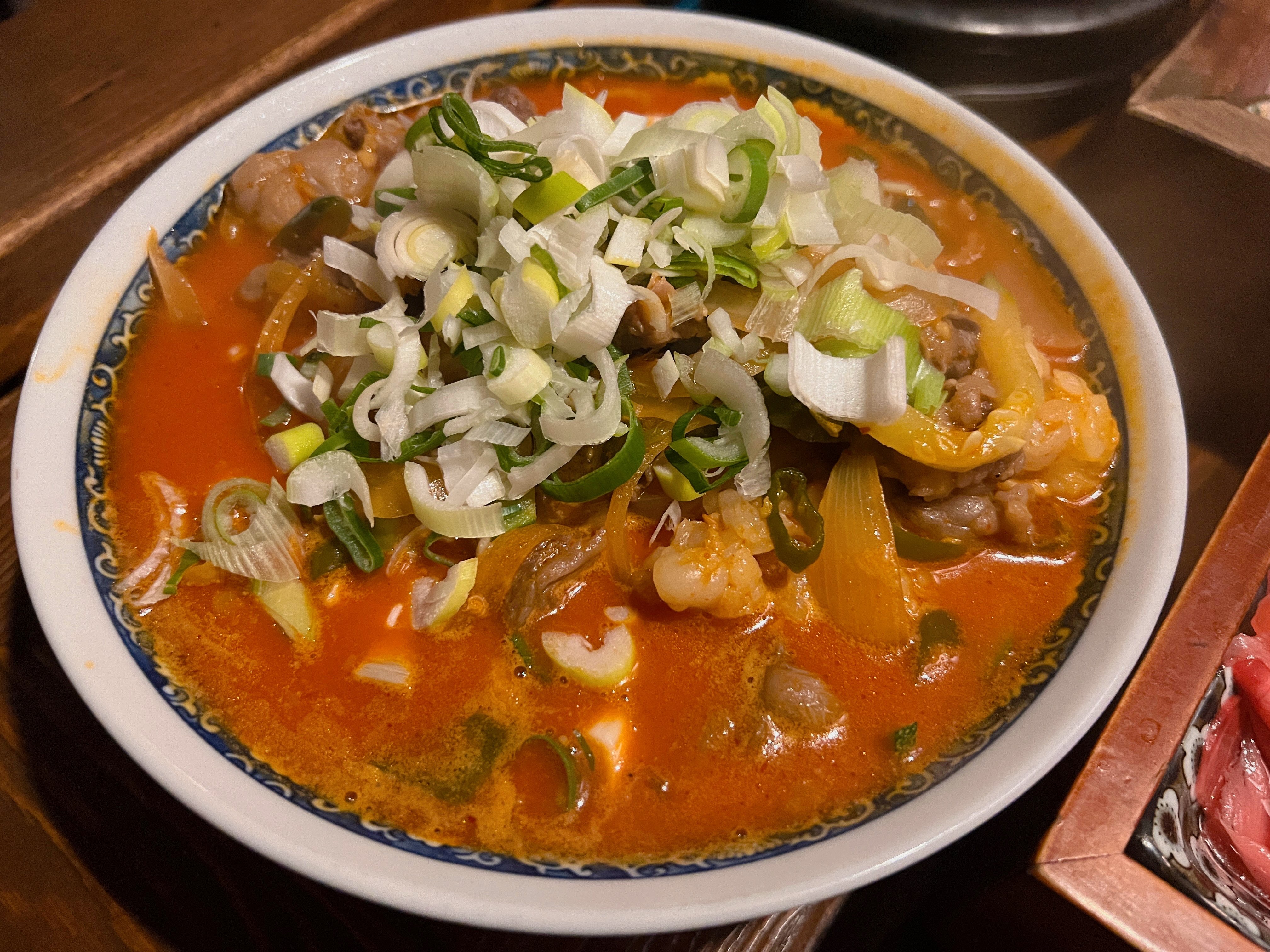 돼지국물과 대창, 벌집양, 와규 스지로 맛을 낸 곱창라멘이랍니다