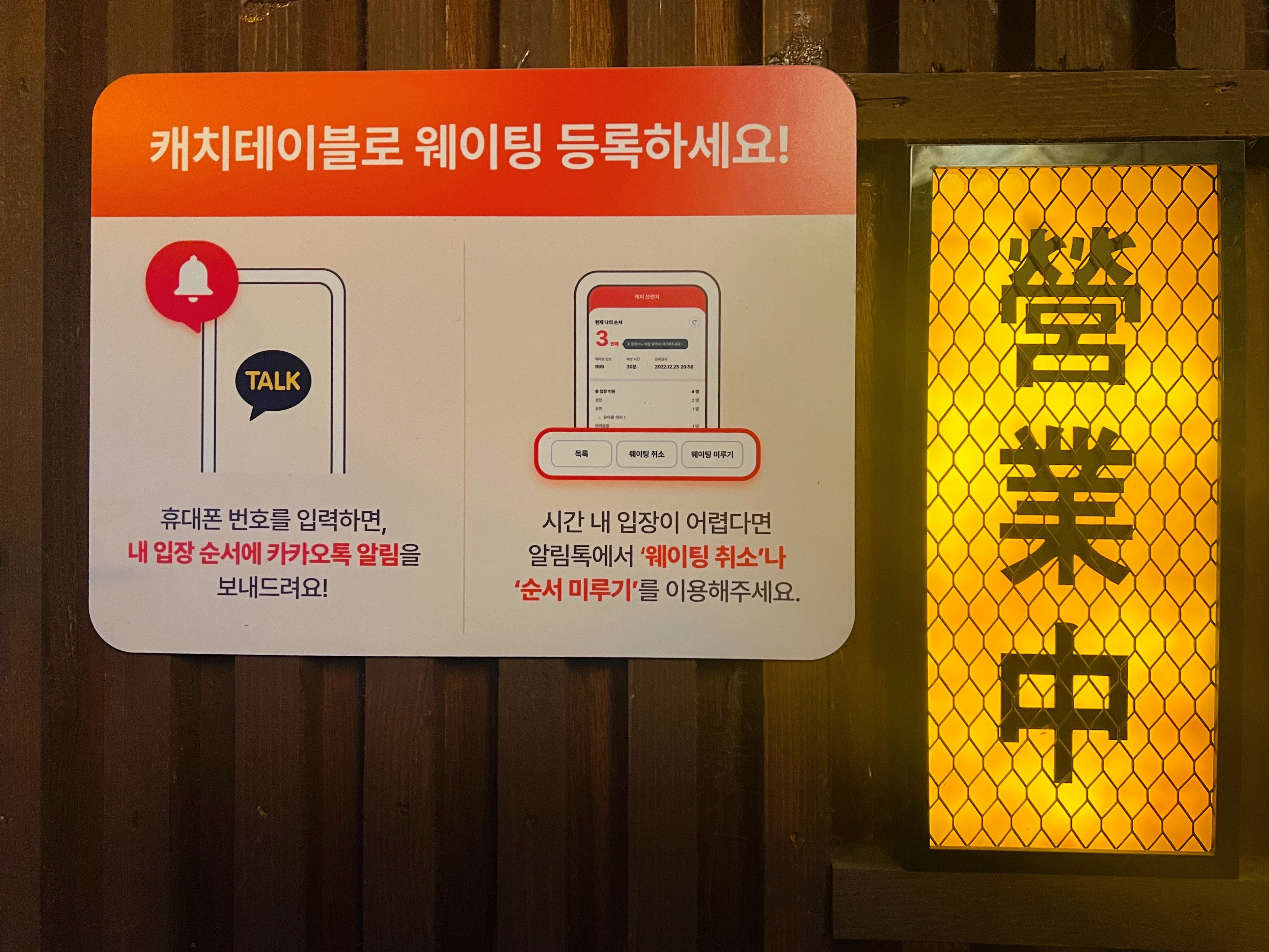 캐치테이블로 웨이팅 등록할 수 있다고 하구요